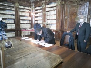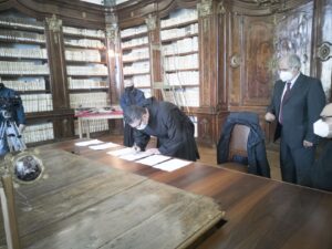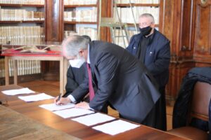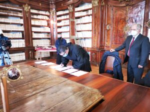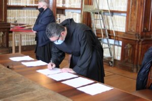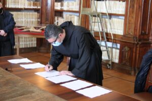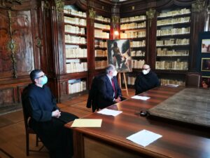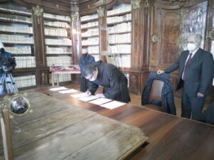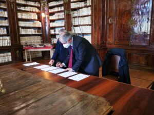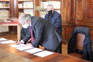 L’8 marzo 2021, presso la Biblioteca Monumentale del Santuario di San Francesco di Paola è stato stipulato il protocollo d’intesa tra la Biblioteca Nazionale di Cosenza e la Fondazione San Francesco di Paola. Specialmente in questo periodo storico, dove la pandemia da Covid-19 sta arrecando seri danni alla filiera culturale del nostro Paese e della nostra Regione, questo accordo porta una ventata di aria nuova. Promuovere la cultura dei territori, raccontarne la storia, è di fondamentale importanza per le nuove generazioni. La Biblioteca Nazionale di Cosenza, nella persona del suo Direttore, dott. Massimo De Buono, forte della sua autonomia con funzioni di biblioteca universitaria iscritta nell’elenco delle Biblioteche pubbliche statali, oggi con la firma di questo protocollo d’intesa potenzierà l’operato della rete del Polo CSA, di cui ne è il gestore. Il Polo che è costituito da biblioteche di enti locali, da biblioteche scolastiche, da accademie ed istituzioni pubbliche e private, operanti in diversi settori disciplinari e che contribuisce alla catalogazione partecipata ed all’incremento dell’Indice Nazionale, vedrà un potenziamento attraverso la realizzazione di progetti comuni con la Fondazione San Francesco di Paola. La Fondazione, che nasce per la promozione della cultura e dell’arte in particolar modo su San Francesco di Paola, nonché sull’Ordine dei Minimi, metterà a disposizione la propria professionalità ed esperienza nel campo della progettazione sul settore bibliotecario, tramite la sua Biblioteca Charitas, vera e propria perla del territorio calabrese. La Fondazione già negli anni scorsi è stata fregiata dal Mibac del marchio dell’anno Europeo della Cultura 2018 per il progetto di digitalizzazione di importanti cinquecentine possedute dalla Biblioteca Charitas, che grazie al suo continuo inserimento di testi nel catalogo nazionale OPAC SBN, è ai primi posti, per numeri di nuovi inserimenti, nell’attività di catalogazione. Il patrimonio librario detenuto dalla Fondazione San Francesco di Paola è unico e raro con sezioni antico e moderno, una vera fortuna per tutto il territorio calabrese e nazionale.